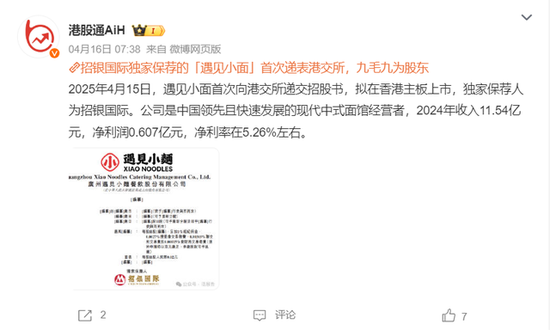 4月15日,遇见小面向港交所递交招股书,拟香港主板IPO上市。招股书显示,遇见小面是一家现代中式面馆经营者。公司在中国内地和香港特别行政区经营遇见小面品牌。截至4月5日,公司的餐厅网络包括中国内地22个城市的374家餐厅及香港特别行政区的6家餐厅。此外,公司有64家新餐厅在积极筹备中。